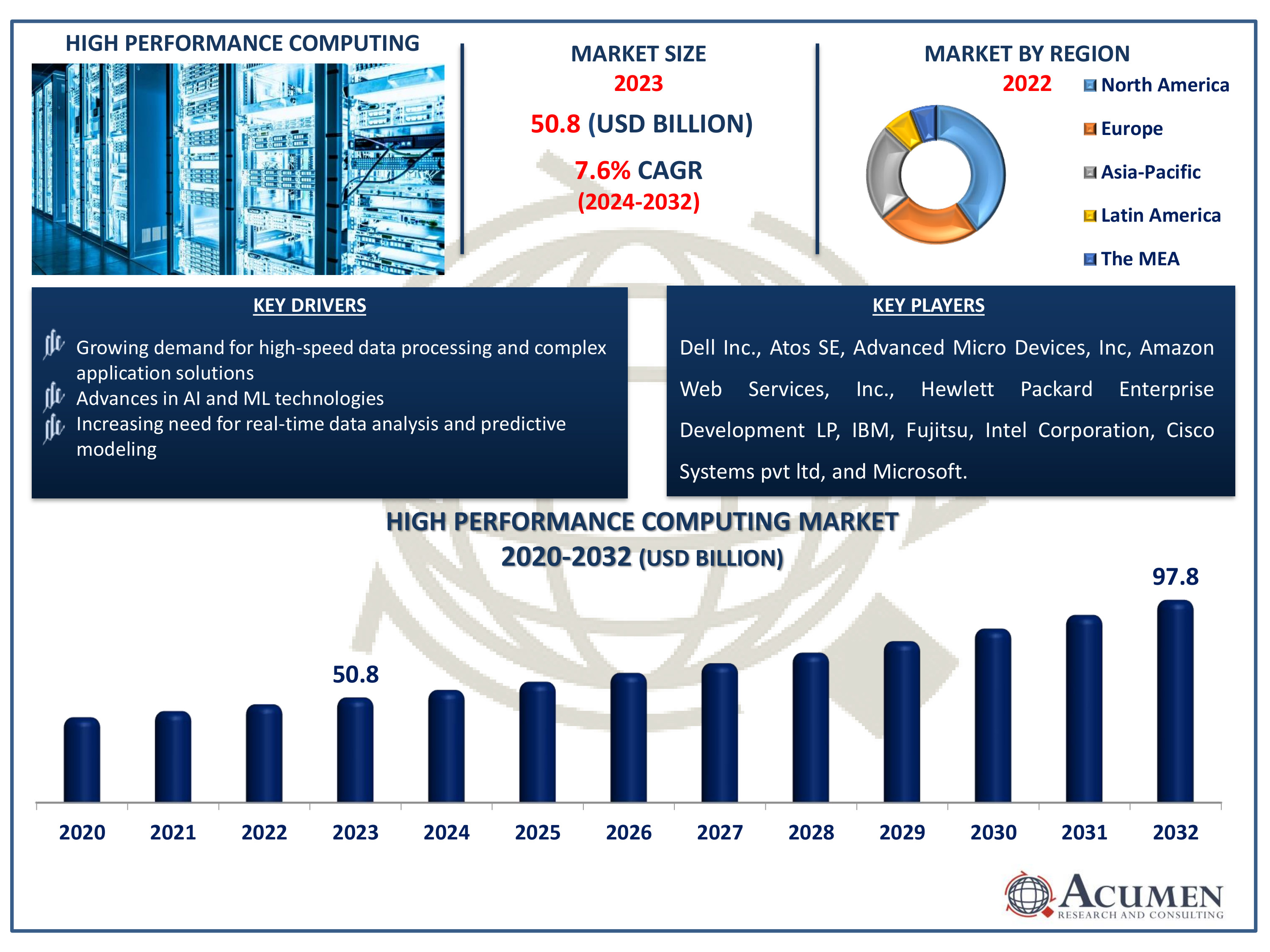 The Global High Performance Computing Market is set to grow from USD 50.8 Billion in 2023 to USD 97.8 Billion by 2032, with an impressive CAGR of 7.6%. Explore market trends and growth drivers.